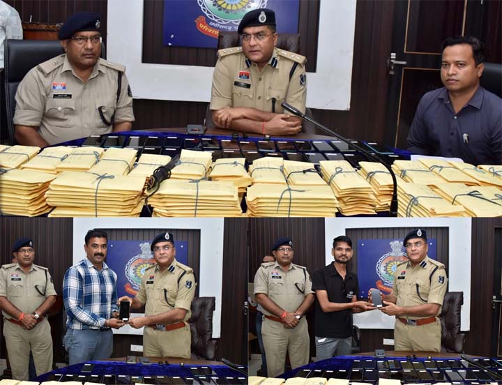 दुर्ग पुलिस ने 70 लाख के 303 गुम मोबाइल किया बरामद, खोए मोबाइल पाकर मालिकों के चेहरे खिले