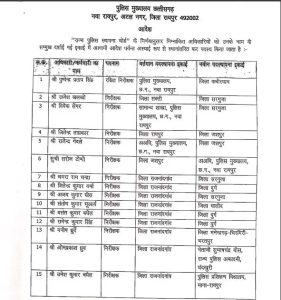 पुलिस अधिकारियों का तबादला: निरीक्षक, उप निरीक्षक और सहायक उप निरीक्षकों का नाम शामिल, देखें लिस्ट…