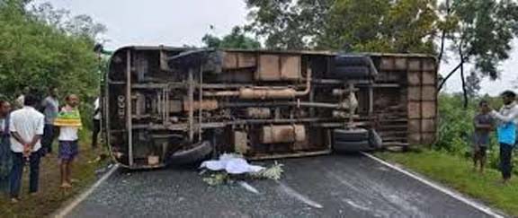 दर्दनाक सड़क हादसा: बस पलटने से एक महिला की मौत, 5 की हालत गंभीर