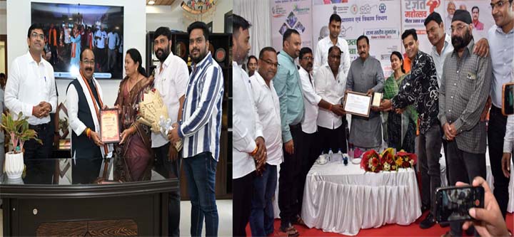 दुर्ग- नगर पालिक निगम दुर्ग सीमा क्षेत्र अंतर्गत बुधवार 17 सितंबर को विवेकानंद भवन में स्वच्छता ही सेवा अभियान, अंगीकार-2025 और छत्तीसगढ़ रजत जयंती महोत्सव का आयोजन मनाया गया. कार्यक्रम का शुभारंभ दुर्ग सांसद विजय बघेल, महापौर अलका बाघमार, आयुक्त सुमित अग्रवाल सहित एमआईसी सदस्य और पार्षदों ने कार्यक्रम में शामिल हुए. कार्यक्रम में नागरिकों के लिए अनेक योजनाओं के स्टॉल लगाए भी लगाए गये थे. जिले के जामुल में पदस्थ राजस्व निरीक्षक और दुर्ग में परिवर्तित शाखा में पदस्थ राजस्व निरीक्षकों का दो अलग-अलग कार्यक्रम में शामिल होने और नेताओं का स्वागत करने के साथ-साथ प्रदेश के उपमुख्यमंत्री अरूण साव को आमंत्रण देने और दुर्ग सांसद विजय बघेल के साथ फोटो सोशल मीडिया में जमकर वायरल हो रहा है.