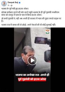 वही प्रदेश कांग्रेस अध्यक्ष दीपक बैज ने अपने सोशल मीडिया फेसबुक में पोस्ट कर कहा कि भाजपा के पूर्व मंत्री हुए हाउस अरेस्ट. कोरबा कलेक्टर हटाने की मांग करने पहुंचे भाजपा के ही पूर्व गृहमंत्री ननकीराम कंवर को रायपुर में एम्स के पास से किया हाउस अरेस्ट. जो कभी गृहमंत्री थे, वही अब अपनी ही सरकार में न्याय की गुहार लगाते सड़क पर है. भाजपा राज में जनता की तो छोड़ो, अपने नेताओं की भी कोई सुनवाई नहीं.