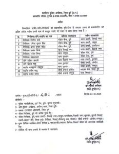 एसपी कार्यालय से जारी आदेश में यह स्पष्ट किया गया है कि स्थानांतरण प्रशासनिक दृष्टि से किया गया है. ट्रांसफर किए गए अफसरों को अपने-अपने नए पद पर तत्काल कार्यभार संभालना होगा.