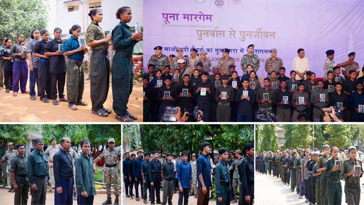 रायपुर- राज्य शासन की व्यापक नक्सल उन्मूलन नीति और शांति, संवाद एवं विकास पर केंद्रित सतत प्रयासों के परिणामस्वरूप बस्तर संभाग में आज नक्सल विरोधी मुहिम को ऐतिहासिक सफलता मिली है. ‘पूना मारगेम – पुनर्वास से पुनर्जीवन’ कार्यक्रम के अंतर्गत दण्डकारण्य क्षेत्र के 210 माओवादी कैडरों ने हिंसा का मार्ग त्यागकर समाज की मुख्यधारा में लौटने का निर्णय लिया है.