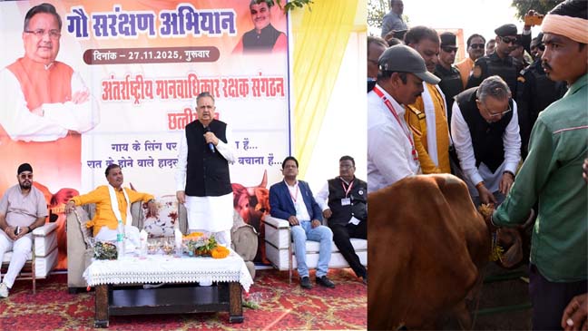 विधानसभा अध्यक्ष डॉ. सिंह ने कहा कि अंतर्राष्ट्रीय मानवाधिकार रक्षक संगठन छत्तीसगढ़ द्वारा गौ संरक्षण अभियान के तहत गौ संरक्षण के लिए बहुत अच्छा प्रयास किया जा रहा है. उन्होंने कहा कि संगठन द्वारा नये गौशाला खोलना, बाल आश्रम, वृद्धा आश्रम, वृक्षारोपण तथा गौ संरक्षण के लिए घुमंतु मवेशियों के गले और सींग में रेडियम बेल्ट एवं पट्टी लगाई जा रही है. उन्होंने संगठन के पदाधिकारियों को बेहतर तरीके से कार्य करने के लिए शुभकामनाएं दी.