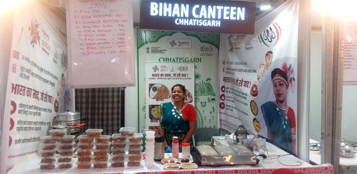 दिल्ली सरस मेला में दुर्ग की भारती ने लगाया मिलेट्स उत्पादों का बिहान कैंटीन