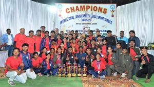 रायपुर- इंदिरा गांधी कृषि विश्वविद्यालय रायपुर में 08 से 11 दिसम्बर 2025 तक आयोजित विश्वविद्यालयीन चार दिवसीय खेल कुम्भ का गुरुवार को समापन हुआ. कृषि महाविद्यालय, रायपुर के स्पार्ट्स कॉम्पलैक्स में चार दिवसीय खेल कुम्भ के समापन समारोह के मुख्य अतिथि डॉ. एस.एस. सेंगर ने विभिन्न खेल स्पर्धाओं में विजेता प्रतिभागियों को पुरस्कार एवं प्रमाण पत्र देकर सम्मानित किया. कार्यक्रम की अध्यक्षता अधिष्ठाता छात्र कल्याण डॉ. संजय शर्मा ने की.