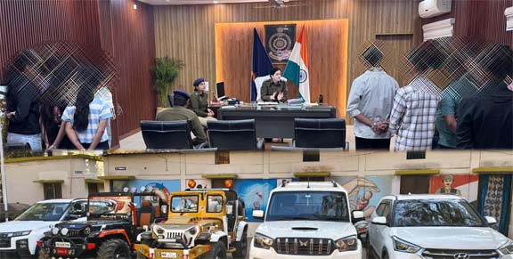 जानकारी के अनुसार, 30 दिसंबर 2025 को सोशल मीडिया साईड, इंस्टाग्राम में विडियों वायरल हुआ है जिसे देखने पर वाहन क्रमांक 01. क्रेटा क्रमांक सी.जी. 04/क्यू.जे./9800 02. जीप्सी क्रमांक आर.जे./141/सी/1151 03. जीप्सी क्रमांक पी.बी. 47/डी./6347 04. स्कार्पियों क्रमांक सी.जी./04/पी.सी./6347 05. क्रेटा क्रमांक सी.जी./08/ए.एम./5001 06. कार क्रमांक सी.जी./04/एच.क्यू./2762 के चालको के द्वारा यातायात के नियमों का उल्लंघन करते हुए लोक मार्ग पर वाहन को उतावलेपन में चलाया जा रहा है तथा वाहन में बैठे कुछ नाबालिक बच्चे वाहन के अंदर व बाहर डॉस कर रहे है. इस प्रकार वाहन चालको एव वाहन मालिको के द्वारा नाबालिक बच्चो को बैठाकर लापरवाही पूर्वक व खतरनाक ढंग से वाहन चालन कर रहे है. जिससे आम लोगो की जान को खतरे में डालना पाये जाने से वाहन चालको के विरूद्व थाना बसंतपुर में अपराध क्रमांक 611/2025 धारा 281, 285 भारतीय न्याय संहिता एवं मोटर व्हीकल एक्ट की धारा 184, 182(1)(क) के तहत् अपराध पंजीबद्व कर विवेचना में लिया गया.