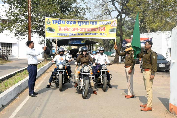 राजनांदगांव- राष्ट्रीय सड़क सुरक्षा माह के दूसरे दिन शुक्रवार को पुलिस अधीक्षक अंकिता शर्मा की उपस्थिति में हेलमेट जन-जागरूकता बाईक रैली का आयोजन किया गया. इस रैली का उद्देश्य आम नागरिकों को दुपहिया वाहन चलाते समय हेलमेट पहनने के महत्व के प्रति जागरूक करना है. हेलमेट जागरूकता रैली में अति. पुलिस अधीक्षक नक्सल आपरेशन मुकेश ठाकुर, अतिरिक्त पुलिस अधीक्षक पुष्पेंद्र नायक, प्रशिक्षु आईपीएस नगर पुलिस अधीक्षक वैशाली जैन, रक्षित निरीक्षक लोकेश कुमार कसेर, यातायात प्रभारी निरीक्षक नवरतन कश्यप, यातायात स्टॉप एवं शहर के पुलिस थाने एवं चौकी स्टॉफ सम्मिलित हुए. हेलमेट जन जागरूकता रैली पुलिस अधीक्षक कार्यालय से प्रारंभ होकर नया बस स्टैण्ड चौक, गुरूद्वारा चौक, मानव मंदिर चौक, भारत माता चौक, गंज चौक से वापस भारत माता चौक, बसंतपुर थाना तिराहा, दुर्गा चौक, मानव मंदिर चौक, महावीर चौक, फौव्वारा चौक, गुरूद्वारा चौक नया बस स्टैण्ड चौक, अम्बेडकर चौक प्यारेलाल चौक, पुलिस अधीक्षक कार्यालय पहुंचकर समापन हुआ.