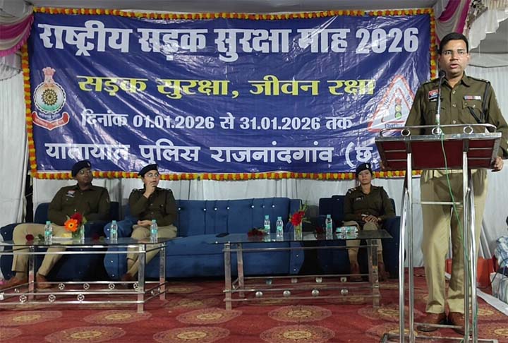 राजनांदगांव- 37वॉ राष्ट्रीय सड़क सुरक्षा माह का पुलिस अधीक्षक अंकिता शर्मा के निर्देशन में शनिवार को समापन समारोह का आयोजन किया गया. कार्यक्रम में अतिरिक्त पुलिस अधीक्षक कीर्तन राठौर, प्रशिक्षु आईपीएस नगर पुलिस अधीक्षक वैशाली जैन, प्रशिक्षु आईपीएस आदित्य कुमार, प्रशिक्षु डीएसपी सुमन जायसवाल, नवरतन कश्यप निरीक्षक यातायात प्रभारी, परिवहन निरीक्षक रियांश बर्मन, एनएचएआई विभाग के बघेल, हेमंत सहारे, ब्रम्हाकुमारी दीदी, यूनिसेफ जिला समन्वयक दिव्या राजपूत एवं यातायात टीम व शहर के गणमान्य नागरिकगण एवं समस्त अधिकारी एवं कर्मचारियों की उपस्थिति के साथ सुदेश यादव के नुक्कड नाट्य के टीम द्वारा नुक्कड़ के माध्यम से यातायात जागरूकता के साथ सड़क सुरक्षा माह का समापन समारोह किया गया.