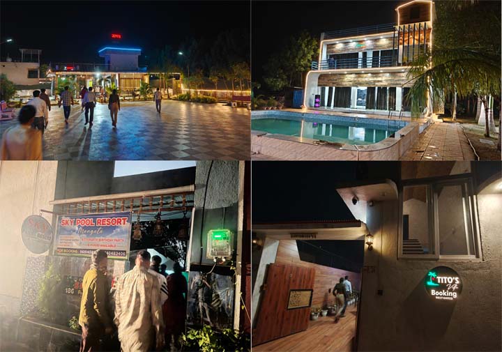 छापेमारी के दौरान लिलिपूट रिसॉर्ट, स्काई पुल रिसॉर्ट, एण्ड विला रिसॉर्ट, किम्बा फार्म रिसॉर्ट, क्लाउड नाईट रिसॉर्ट एवं फाईब्स रिसॉर्ट (मनगटा) के संचालक/मैनेजर द्वारा अपने रिसॉर्ट परिसर में आने-जाने वाले व्यक्तियों को शराब पीने की सुविधा उपलब्ध कराते हुए पाया गया.
