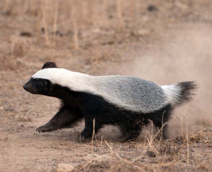 गौरतलब है कि हनी बैजर, बड़े शिकारी जानवरों की तुलना में अपेक्षाकृत छोटा होने के बावजूद, हनी बैजर लड़ाई से पीछे नहीं हटता, यहाँ तक कि अपने से कई गुना बड़े जानवरों से भी. शेर, लकड़बग्घे और यहाँ तक कि ज़हरीले साँप भी हनी बैजर के दृढ़ रवैये और प्रभावशाली जीवन रक्षा कौशल के कारण उससे दूर भाग जाते हैं.