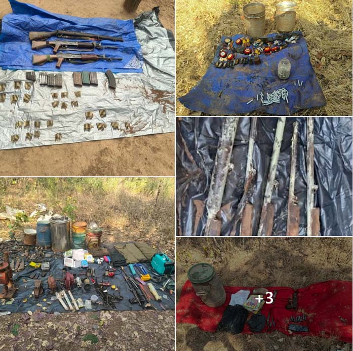 पुलिस के अनुसार, जनवरी-2026 को गरियाबंद में आत्मसमर्पण कर समाज की मुख्यधारा में वापस लौटे माओवादियों से गहन पूछताछ करने के पश्चात् प्रतिबंधित संगठन सीपीआई माओवादी के ओडिसा राज्य कमेटी के शीर्ष नेतृत्व द्वारा जिला गरियाबंद के ओडिसा राज्य से लगे पहाडी श्रृंखलाआें में विभिन्न स्थानों पर आटोमेटिक हथियार एवं टेक्निकल टीम के वेपन वर्कशॉप के उपकरण सहित भारी मात्रा में अन्य सामाग्रियों को डम्प कर रखे जाने की जानकारी प्राप्त हुई. प्राप्त जानकारी के आधार पर डम्प के स्थानों को चिन्हित कर जिला मुख्यालय गरियाबंद से जिला पुलिस बल ई-30 की आप्स टीम को दिनांक 06/02/2026 को रवाना किया गया था. लगातार 36 घण्टे चले सर्च अभियान के पश्चात् ई-30 टीम ने 06 अलग-अलग स्थानों से माओवादियों द्वारा डम्प कर रखे गये 02 नग इंसास, 01 नग 303, 01 नग देशी कट्टा, 01 नग सुरका (देशी बीजीएल लांचर), 02 नग 12 बोर, 02 सिंगल शॉट हथियार, 127 नग जिंदा राउण्ड, 08 नग मैग्जीन, 22 नग बीजीएल सेल, 01 बण्डल इलेक्ट्रिक वॉयर तथा टेक्निल टीम के वेपन वर्कशॉप के विभिन्न उपकरणों को बरामद करने में सफलता प्राप्त की है. ज्ञात हो कि माओवादियों की टेक्निकल टीम उनके शीर्ष नेतृत्व के सीधे निगरानी में आईईडी तथा विभिन्न देशी हथियारों के निर्माण सहित आटोमेटिक हथियारों के मरम्मत का कार्य संपादित करती थी.