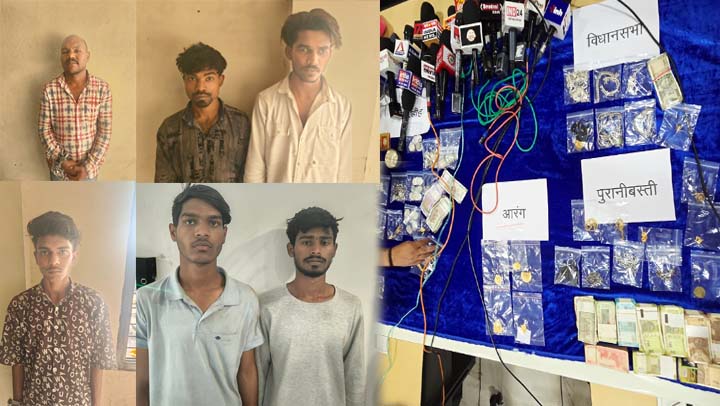 कुल 08 प्रकरणों में 06 आरोपी एवं विधि के साथ संघर्षरत 01 बालक सहित कुल 07 को गिरफ्तार कर उनके कब्जे से चोरी की सोने, चांदी के जेवरात, नगदी रकम, मोटर सायकल तथा अन्य जुमला कीमती लगभग 28,00,000/- रूपये जप्त किया गया.