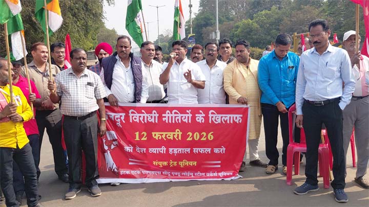 दुर्ग- केंद्र सरकार की जनविरोधी और श्रमिक विरोधी नीतियों के खिलाफ आज भिलाई-दुर्ग सहित जिले में हजारों मजदूर, किसान और श्रमजीवी वर्ग के लोग सड़क पर उतरे. राष्ट्रीय श्रमिक संगठनों द्वारा आयोजित राष्ट्रव्यापी हड़ताल के तहत गुरूवार को भिलाई-दुर्ग के केंद्र सरकार के उपक्रमों और उद्योगों के कर्मचारी और श्रमिक तथा किसान आदि हड़ताल पर रहे. भिलाई में भिलाई इस्पात संयंत्र और औद्योगिक क्षेत्र के उद्योगों में भी हड़ताल का आंशिक असर देखा गया. वहीं दुर्ग में रसमड़ा के कई उद्योगों में भी यूनियनों द्वारा विरोध प्रदर्शन किया गया. हड़ताल का मुख्य असर भिलाई में रहा. इंटक, सीटू,एटक, एक्टू, और लोईमू, एचएमएस, स्टील वकर्स यूनियन द्वारा सेक्टर-1 चौक पर सुबह 6 बजे से शाम 6 बजे तक यूनियन नेता ने प्लांट जाते कर्मियों से हड़ताल में शामिल होने का आह्वान करते रहे. यूनियनों ने केंद्र सरकार के श्रमिक विरोधी लेबर कोड को वापस लेने की मांग की. बताया कि मोदी सरकार 1 अप्रैल से नए चार श्रम संहितों को देश में लागू करने जा रही है. लेबर कोड लागू हो जाने से मजदूर,कर्मचारी के कई अधिकारों पर कुठाराघात होगा.