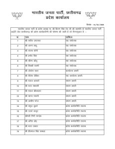 रायपुर- भारतीय जनता पार्टी की आईटी सेल की प्रदेश कार्यकारिणी की घोषणा की गई है. सह संयोजक, कार्यालय प्रभारी, सह कार्यालय प्रभारी, संभाग प्रभारी के साथ प्रदेश कार्यसमिति सदस्यों की नियुक्ति की गई है.
