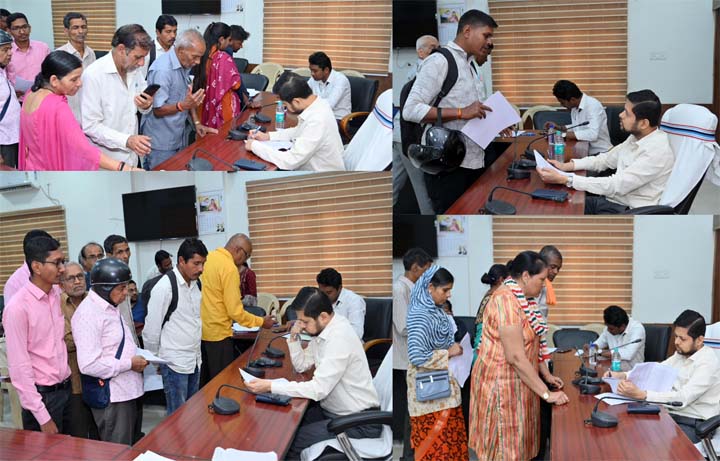 दुर्ग- जिला कार्यालय के सभाकक्ष में कलेक्टर अभिजीत सिंह ने जनदर्शन कार्यक्रम में पहुंचे जनसामान्य लोगों से मुलाकात कर उनकी समस्याएं सुनी. उन्होंने जनदर्शन में पहुंचे सभी लोगों की समस्याओं को गंभीरता से सुना और समुचित समाधान एवं निराकरण करने संबंधित विभागों को शीघ्र कार्यवाही कर आवश्यक पहल करने को कहा. जनदर्शन में डिप्टी कलेक्टर हितेश पिस्दा भी उपस्थित थे. जनदर्शन में अवैध कब्जा, आवासीय पट्टा, प्रधानमंत्री आवास, भूमि सीमांकन कराने, सीसी रोड निर्माण, ऋण पुस्तिका सुधार, आर्थिक सहायता राशि दिलाने सहित विभिन्न मांगों एवं समस्याओं से संबंधित आज 137 आवेदन प्राप्त हुए.