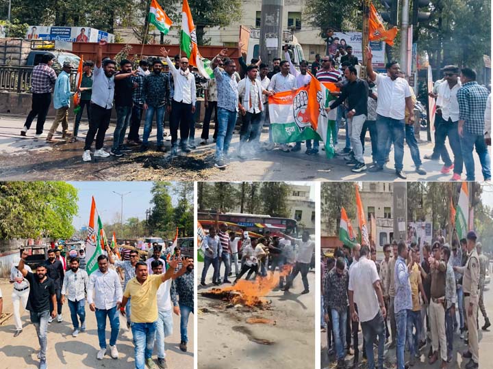 युवा कांग्रेस ने पीएम मोदी का फूंका पुतला, उदय भानु चिब की गिरफ्तारी का किया विरोध