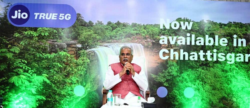 रायपुर : मुख्यमंत्री भूपेश बघेल ने अपने निवास कार्यालय में शनिवार की शाम एक कार्यक्रम में जियो ट्रू 5जी सेवा की शुरुआत की. इस लॉन्च के साथ छत्तीसगढ़ के 3 शहरों राजधानी रायपुर, दुर्ग और भिलाई में जियो ट्रू 5जी सेवाएं शुरू हो गई.