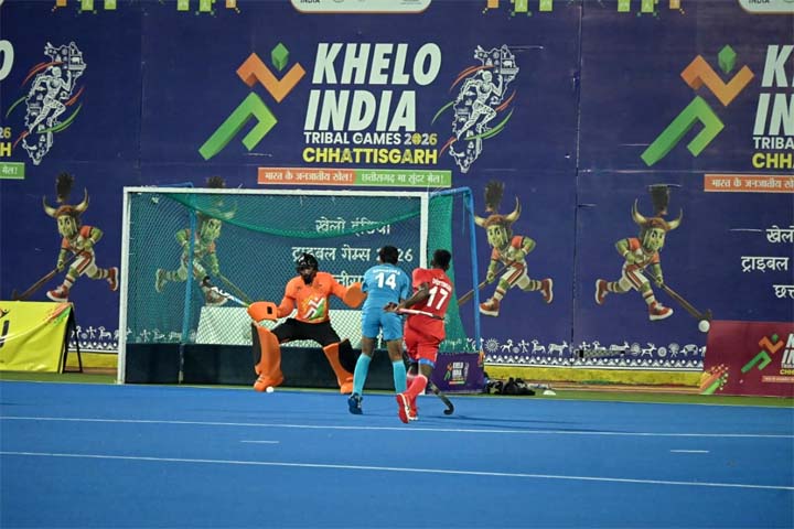 रायपुर- खेलो इंडिया ट्राइबल गेम्स के अंतर्गत राजधानी रायपुर स्थित सरदार वल्लभभाई पटेल इंटरनेशनल हॉकी स्टेडियम में तीसरे दिन शुक्रवार को पुरुष हॉकी प्रतियोगिता के सभी मैच दिलचस्प और रोमांच से भरे मुकाबले रहे.