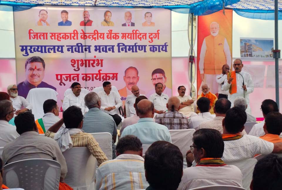मंत्री गजेन्द्र यादव ने किया सहकारी बैंक दुर्ग के नए मुख्यालय भवन का भूमिपूजन