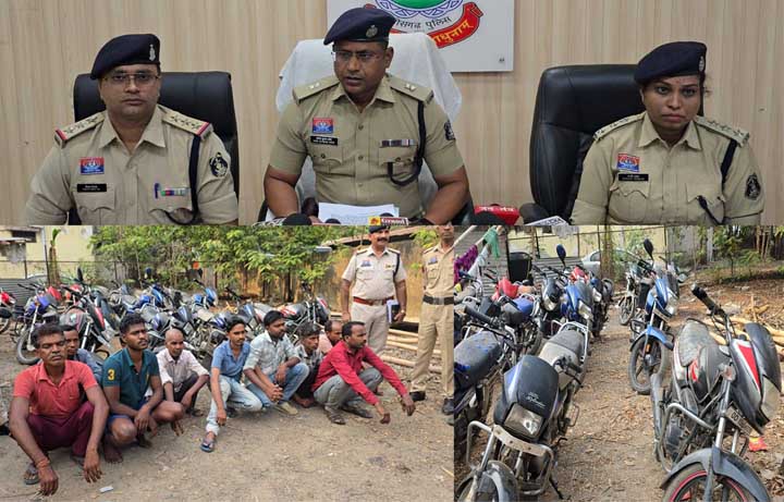रायगढ़- वरिष्ठ पुलिस अधीक्षक शशि मोहन सिंह के दिशा निर्देशन तथा एडिशनल एसपी अनिल कुमार सोनी के मार्गदर्शन में साइबर थाना और पूंजीपथरा पुलिस की संयुक्त टीम ने एक अंतर्राज्यीय बाइक चोर गिरोह का पर्दाफाश करते हुए चोरी की 21 मोटरसाइकिल बरामद की है. मुख्य आरोपी सुखदेव चौहान को गिरफ्तार किया गया है, उसका साथी शिव नागवंशी फरार है. पुलिस ने चोरी की बाइक खरीदने वाले 9 आरोपियों को भी गिरफ्तार किया है. बरामद 21 मोटरसाइकिलों की बाजार कीमत करीब 15 लाख रुपये आंकी गई है.