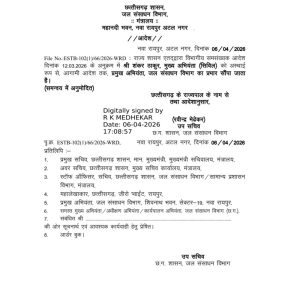 रायपुर- छत्तीसगढ़ शासन के जल संसाधन विभाग ने एक महत्वपूर्ण प्रशासनिक आदेश जारी किया है. 6 अप्रैल 2026 को जारी इस आदेश के अनुसार, शंकर ठाकुर, जो वर्तमान में मुख्य अभियंता (सिविल) के पद पर कार्यरत हैं, उन्हें अस्थायी रूप से आगामी आदेश तक प्रमुख अभियंता, जल संसाधन विभाग का प्रभार सौंपा गया है. यह नियुक्ति विभागीय समसामयिक व्यवस्था के तहत की गई है. आदेश मंत्रालय, महानदी भवन, नया रायपुर अटल नगर से जारी किया गया है.