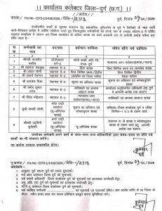दुर्ग- कलेक्टर कार्यालय दुर्ग द्वारा प्रशासनिक कार्यों को अधिक प्रभावी और सुचारू बनाने के उद्देश्य से कर्मचारियों के दायित्वों में फेरबदल किया गया है. इस संबंध में 9 अप्रैल 2026 को आदेश जारी किया गया.