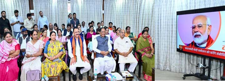 रायपुर- मुख्यमंत्री विष्णुदेव साय ने आज राजधानी रायपुर स्थित मुख्यमंत्री निवास कार्यालय में नई दिल्ली के विज्ञान भवन से प्रसारित ‘नारी शक्ति वंदन सम्मेलन’ में प्रधानमंत्री नरेंद्र मोदी के उद्बोधन को सुना. इस अवसर पर उन्होंने कहा कि यह देश की मातृशक्ति के लिए एक ऐतिहासिक क्षण है, जो भारत के लोकतांत्रिक ढांचे को और अधिक समावेशी एवं सशक्त बनाने की दिशा में निर्णायक साबित होगा.