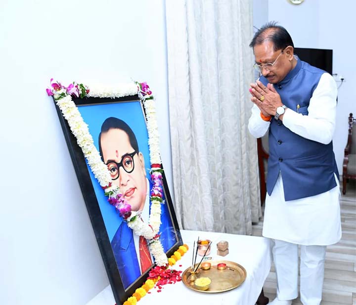 रायपुर- मुख्यमंत्री विष्णु देव साय ने आज यहाँ अपने निवास कार्यालय में भारत रत्न डॉ. भीमराव अम्बेडकर की जयंती पर उनके छायाचित्र पर पुष्प अर्पित कर उन्हें नमन किया. इस अवसर पर शिक्षा मंत्री गजेंद्र यादव, विधायक रोहित साहू एवं जनप्रतिनिधि उपस्थित रहे.