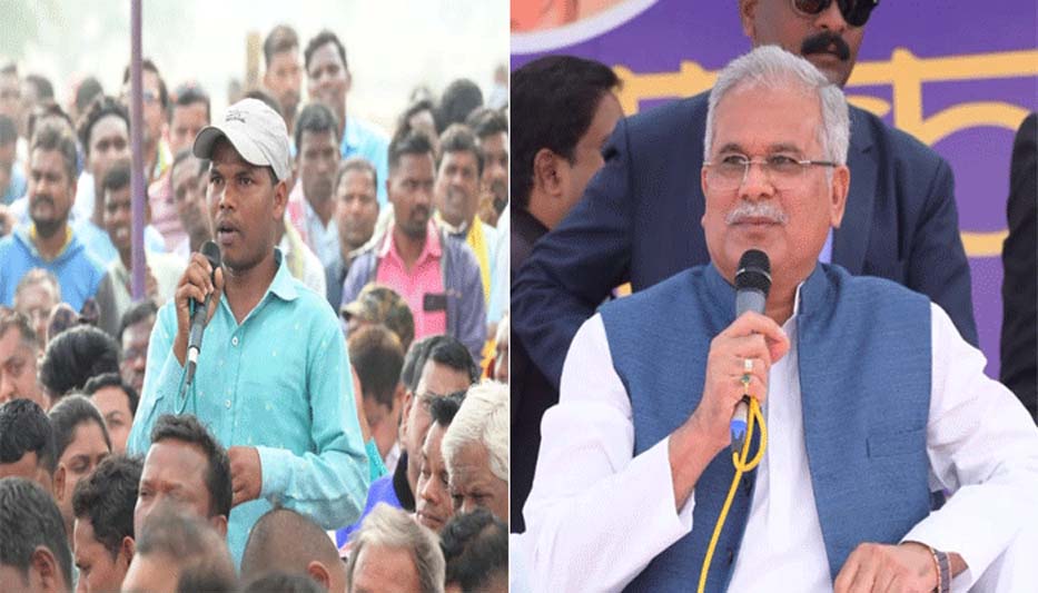 कोरबा- मुख्यमंत्री भूपेश बघेल भेंट-मुलाकात के लिए कोरबा जिले के कटघोरा विधानसभा के ग्राम नोनबिर्रा पहुंचे तो तिवरता (हरदी बाजार) के किसान रमेश कुमार जांगड़े ने वन अधिकार पट्टा अब तक नहीं मिलने की बात कही, उन्होंने बताया कि विशेष ग्राम सभा में तीन पीढ़ी से भूमि पर काबिज होने का साक्ष्य सिद्ध हो गया है, इसके बावजूद भी पट्टा नहीं मिला . उनकी बात सुनकर मुख्यमंत्री ने कल तक उन्हें वन अधिकार पट्टा देने के अधिकारियों को निर्देश दिए और पटवारी को तत्काल प्रभाव से निलंबित करने के निर्देश दिए.