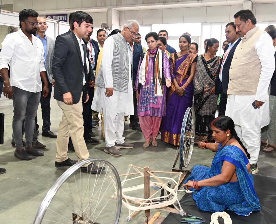 मुख्यमंत्री श्री बघेल ने महिलाओं के कार्यों की सराहना करते हुए उन्हें बधाई दी एवं उनके उज्ज्वल भविष्य की कामना भी की. उन्होंने समूह की महिलाओं के आग्रह पर उनके साथ सेल्फी भी खिंचवाई. समूह की महिलाओं ने मुख्यमंत्री एवं अतिथियों को रीपा में बने उत्पादों की टोकरी भेंट की.