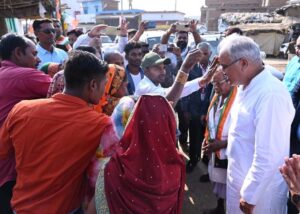 देवांगन परिवार ने घर के मुख्य द्वार पर तिलक-आरती से पुष्प-गुच्छ और श्रीफल भेंट कर मुख्यमंत्री का किया आत्मीय स्वागत