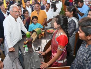 बलौदाबाजार : मुख्यमंत्री भूपेश बघेल ने जिला मुख्यालय बलौदाबाजार में 3 हजार स्क्वायर फीट में निर्मित गढ़कलेवा का लोकार्पण किया. मुख्यमंत्री ने इस दौरान गढ़कलेवा का अवलोकन किया और स्व-सहायता समूह की महिलाओं से बातचीत कर गढ़कलेवा में व्यवस्थाओं की जानकारी ली.