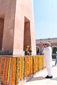 मुख्यमंत्री भूपेश बघेल ने बस्तर की शांति के लिए अपने प्राणों की आहुति देने वाले अमर शहीद जवानों को अमर वाटिका के शहीद स्मारक में पुष्प चक्र अर्पित कर श्रद्धांजलि दी. अमर वाटिका में करीब 60 फीट ऊंचा शहीद स्मारक बनाया गया है. शहीद स्मारक के पास एक काले ग्रेनाइट की दीवार में नक्सली मुठभेड़ में शहीद हुए जवानों के नाम लिखे गए हैं. मुख्यमंत्री ने शहीदों के परिजनों को शॉल, श्रीफल भेंट कर सम्मानित किया और शहीदों की याद में वाटिका में नारियल का पौधा रोपा.