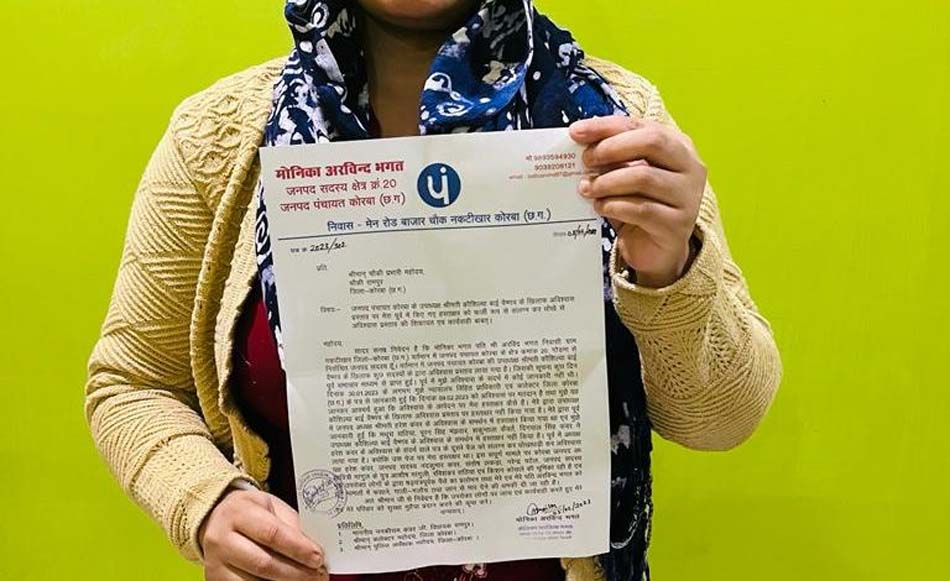 कार्यवाही को लेकर जनपद सदस्य मोनिका अरविंद भगत ने सौंपा ज्ञापन