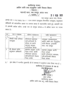 आदिम जाति तथा अनुसूचित जाति विकास विभाग के अवर सचिव मार्टिन लकड़ा ने एक आदेश जारी कर माया वारियर को आयुक्त आदिम जाति तथा अनुसूचित जाति विकास विभाग के अधीन उपायुक्त के पद पर इंद्रावती भवन रायपुर में पदस्थ किया है.