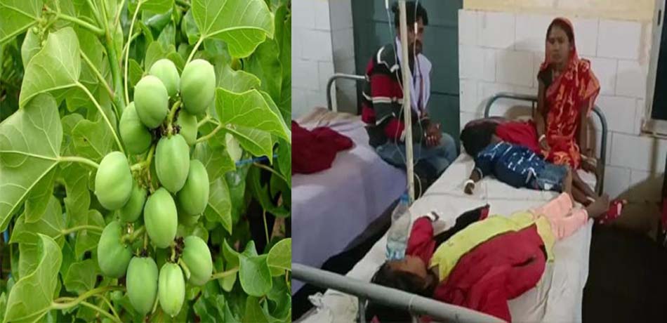 कांकेर : कांकेर के पखांजुर इलाके के गाँव पीव्ही नंबर-35 के 9 बच्चे रतनजोत के बीज खाकर बीमार पड़ गये. बच्चों को जब उल्टी, दस्त की शिकायत हुई तो परिजन उन्हें देर रात गंभीर हालत में अस्पताल लेकर पहुँचे. वहीं ज्यादा उल्टी, दस्त होने के कारण दो बच्चों की हालत ज्यादा गंभीर बताई जा रही थी.